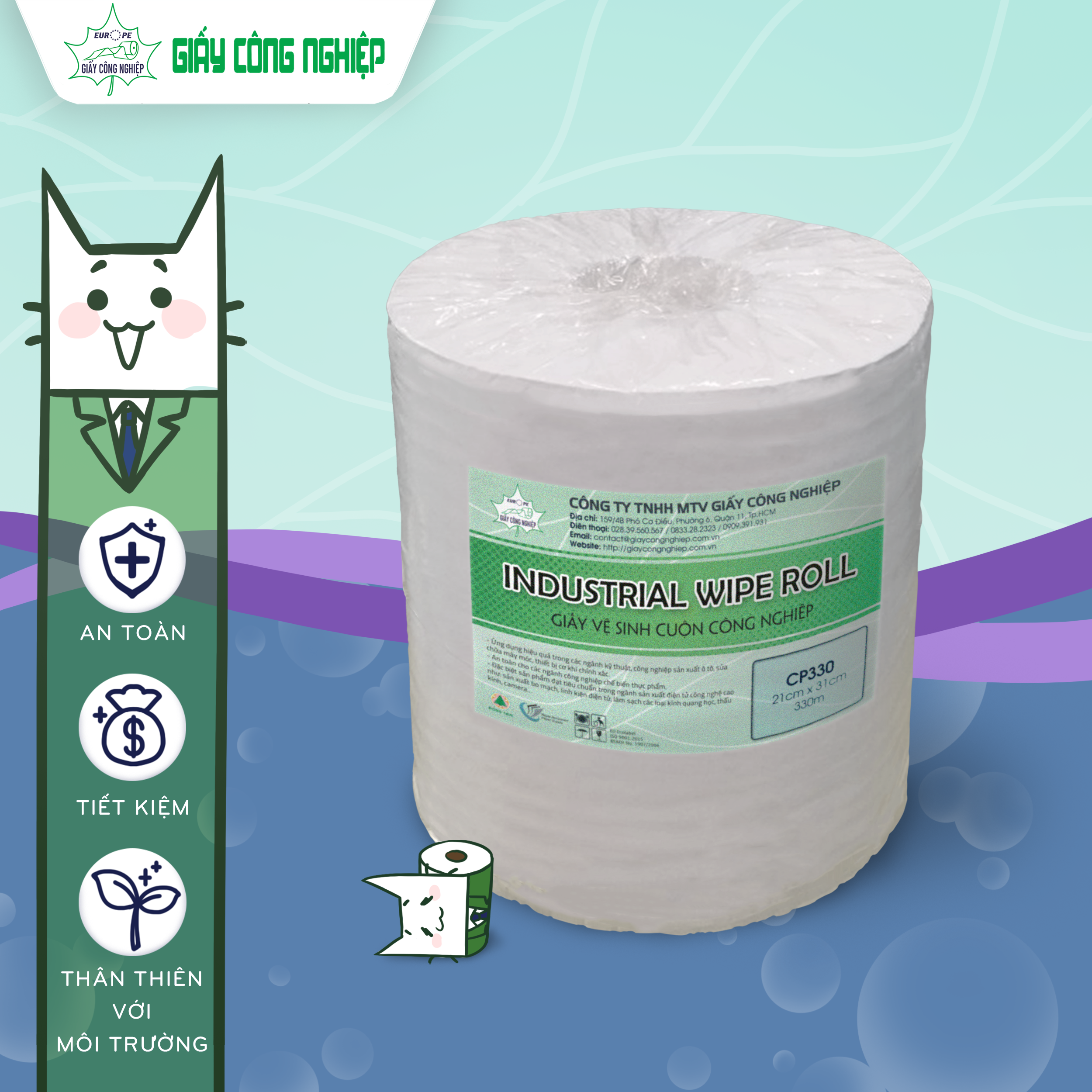 Thông số kỹ thuật : 20cm x 30cm/tờ, 330m/cuộn, 4 cuộn/thùng